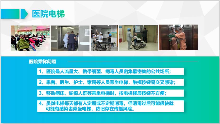 (2)患者、醫生、護士、家屬等人員乘坐電梯,觸摸按鍵易交叉感染;