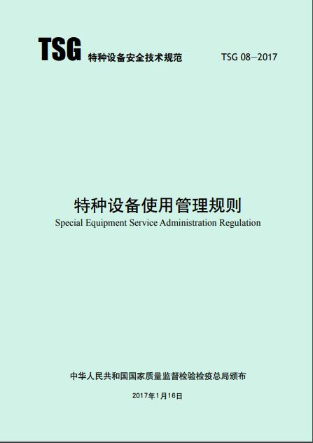 《特種設備使用管理規則 TSG 08—2017》國家質量監督檢驗檢疫總局頒布