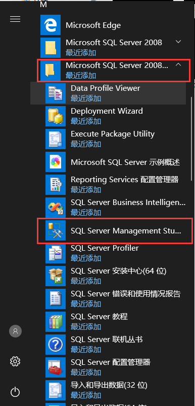 在快速啟動中找到安裝目錄,點擊 SQL Server Management Studio