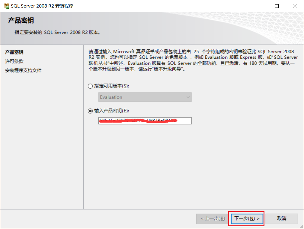產品密鑰會自動填入,點擊下一步