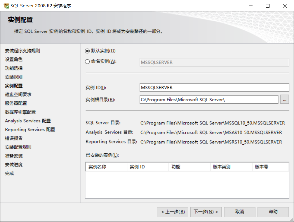 選擇默認實例,下一步